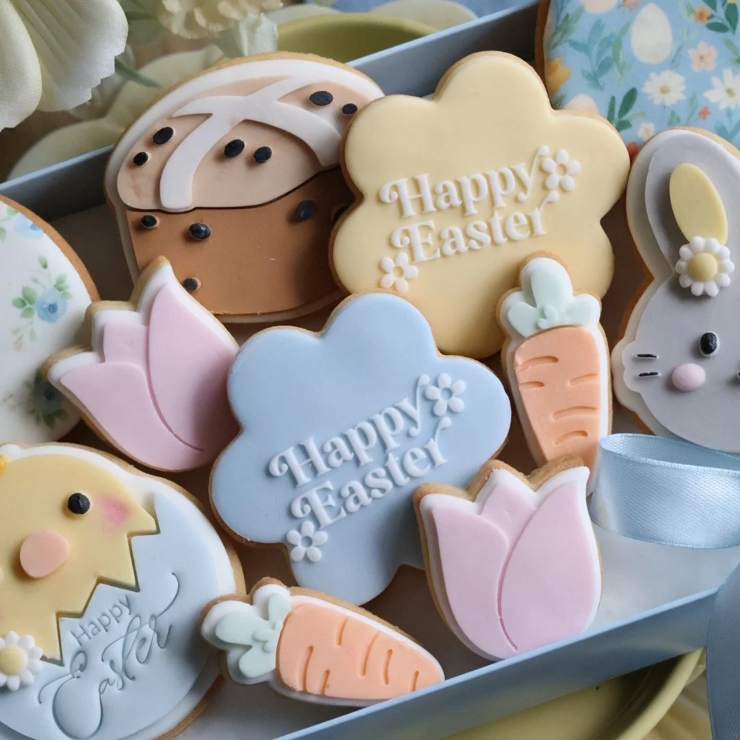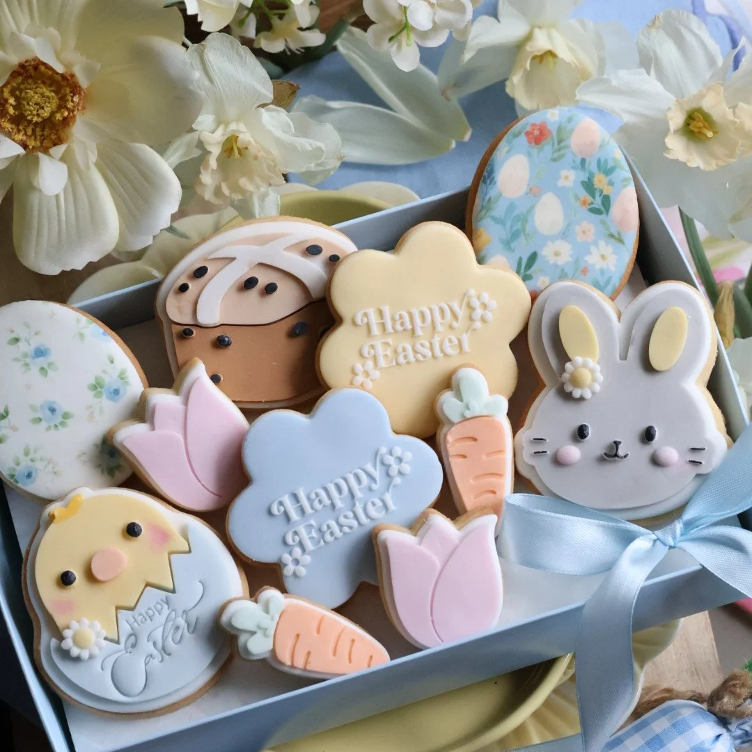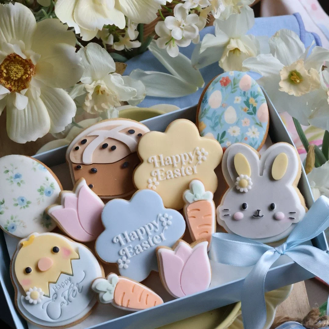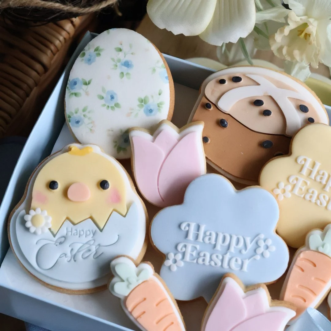 Mixed box of 11 individually wrapped Fondant covered cookies, ideal for your family easter table setting egg hunt.